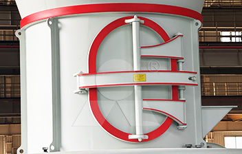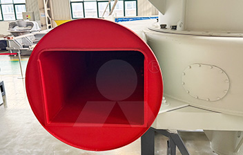 破碎后合格的物料,經(jīng)變頻皮帶給料機均勻定量連續(xù)地送入主機磨室內進行研磨。粉磨后的物料被風機氣流送入選粉機進行分級,在分析機的作用下,不符合細度要求的物料落入磨室內重新碾磨,合格的物料則隨氣流經(jīng)管道進入旋風集粉器內,進行分離收集,經(jīng)排料裝置排出即為成品粉體。分離后的氣流通過旋風集粉器上端回風管進入風機。該系統(tǒng)在負壓狀態(tài)下運行,設備配有脈沖除塵器,符合國家環(huán)保標準。