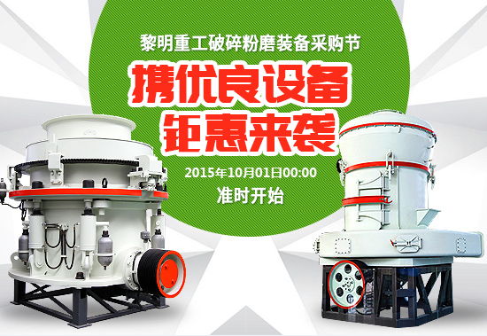 2015年10月01日00:00,黎明重工破碎粉磨設(shè)備采購節(jié),準(zhǔn)時(shí)開始,金秋十月,大“惠”戰(zhàn),邀您共襄盛舉,共創(chuàng)輝煌。