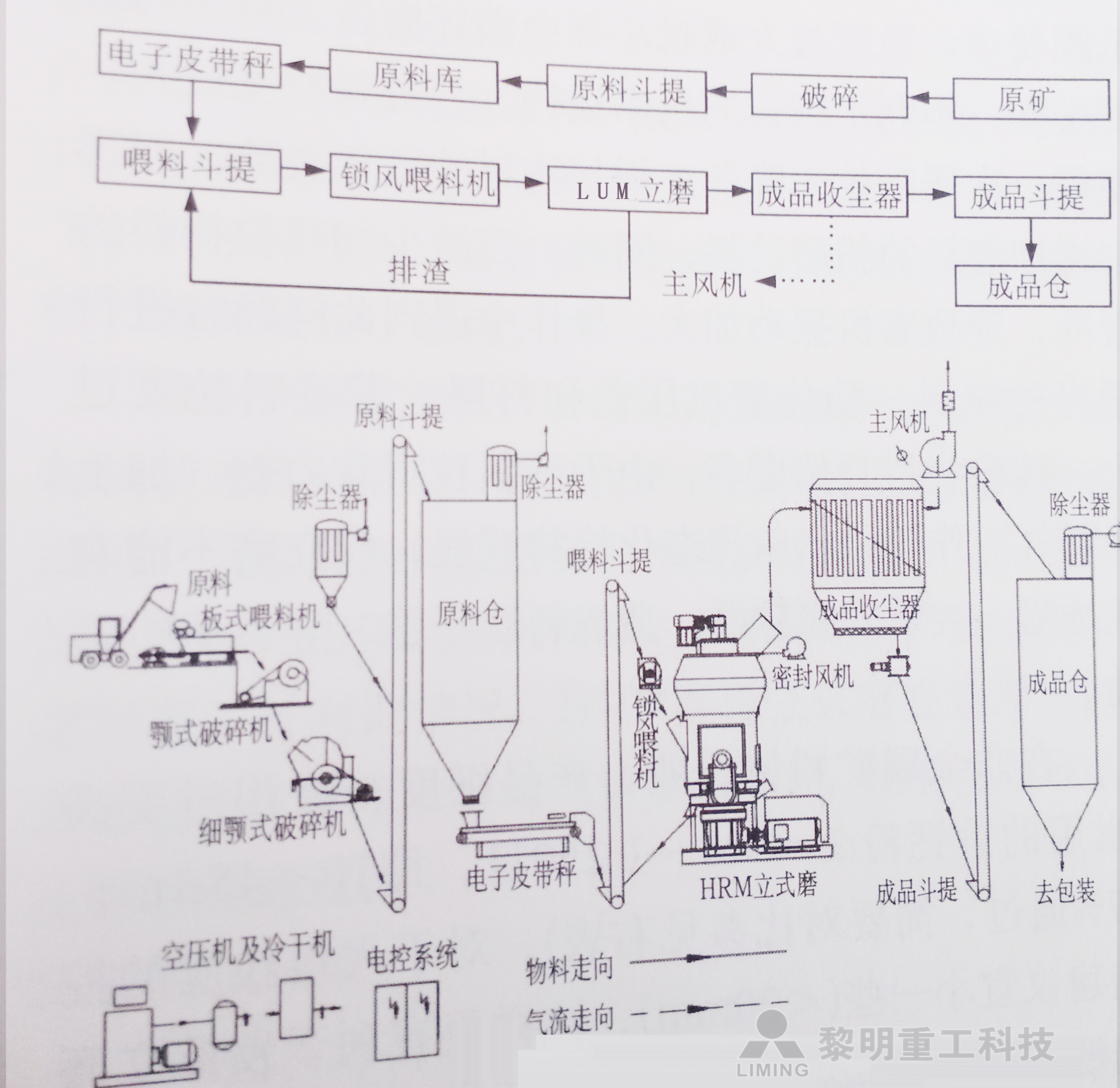 河南黎明重工LUM超細(xì)立式磨粉機(jī)加工工藝流程: