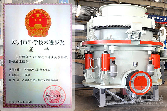 2015年8月,黎明重工HPT液壓圓錐破碎機(jī)正式被鄭州市科技局評(píng)定為“鄭州市科技進(jìn)步一等獎(jiǎng)”。HPT系列產(chǎn)品通過(guò)對(duì)層壓破碎、偏心旋轉(zhuǎn)、全接觸浮動(dòng)密封、碟簧組變形補(bǔ)償?shù)仍砑夹g(shù)的研究,解決了多缸圓錐破普遍存在的潤(rùn)滑系統(tǒng)密封性差、振動(dòng)大、效率低、產(chǎn)量低、無(wú)過(guò)載保護(hù)、軋臼壁固定松動(dòng)等難題。