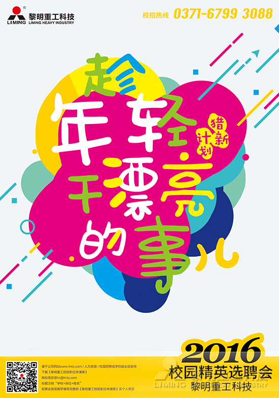 “傲青春·夢想飛揚季”、“傲青春·夢想綻放季”、“下一站,黎明”,“獵新計劃——青年青年站出來”,這些主題鮮明的精英選聘會讓學子們印象深刻。每一場的宣講,每一次的熱忱溝通,每一站的追隨,黎明重工吸引了各大高校佼佼者的加入,成為這個群體中口口相傳的企業(yè)。2016年,“獵新計劃——趁年輕,干漂亮的事兒”活力出發(fā)!