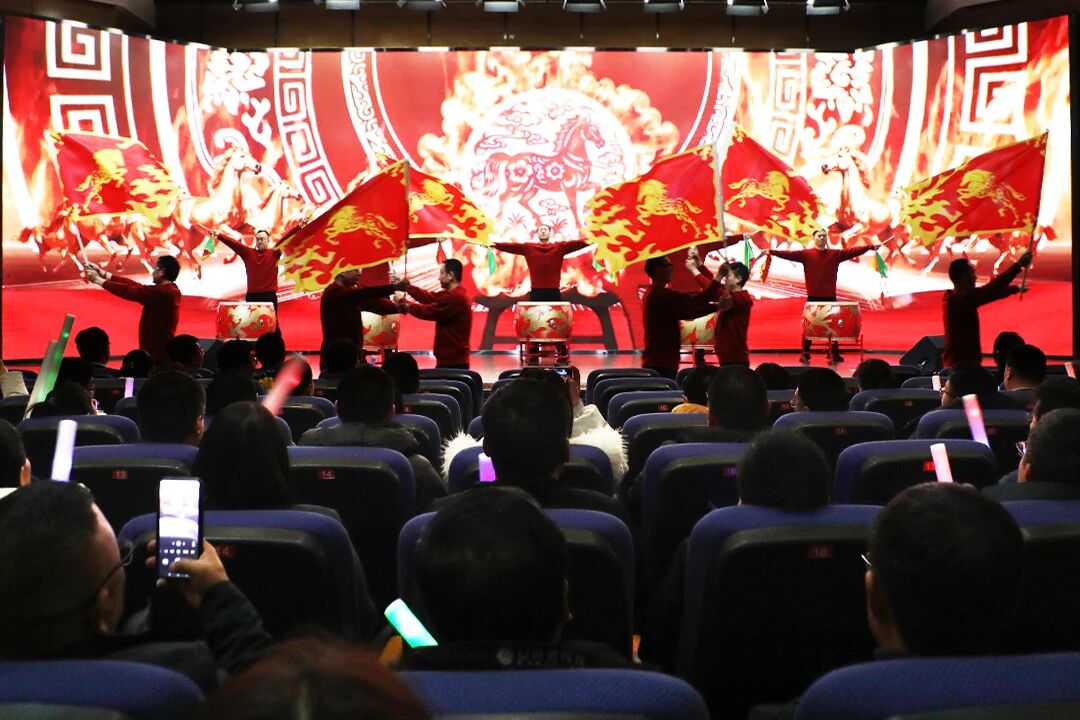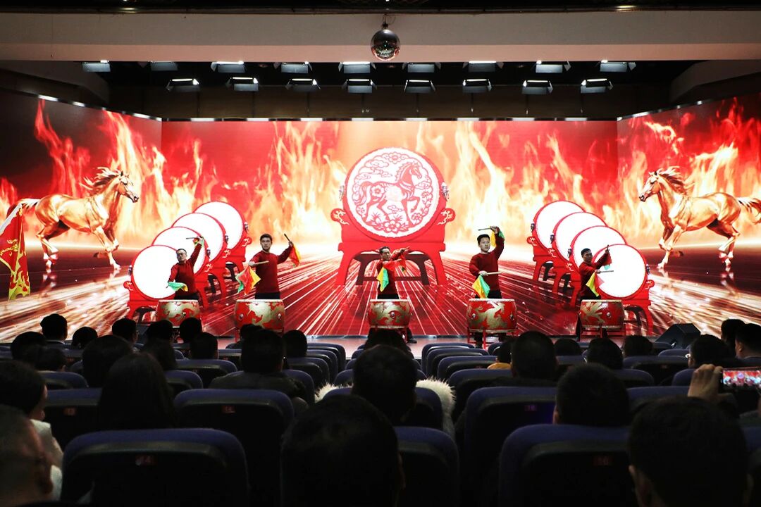 盛會(huì)間隙,文藝匯演精彩紛呈,現(xiàn)場(chǎng)氛圍熱烈高漲。銷售團(tuán)隊(duì)執(zhí)旗擊鼓登場(chǎng),鼓點(diǎn)鏗鏘、旌旗獵獵,盡顯昂揚(yáng)銳氣與磅礴氣勢(shì)。