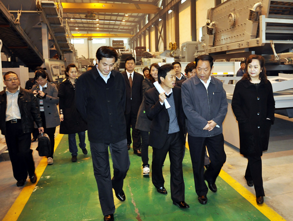 在產(chǎn)品展示區(qū),李主席對公司自主研發(fā)的移動破碎站產(chǎn)生了極大的興趣,這種一體化的作業(yè)方式較大程度的優(yōu)化了作業(yè)空間,消除了環(huán)境帶給破碎作業(yè)的障礙,在城市建筑垃圾的處理方面有著廣闊的應(yīng)用空間。李主席熱情地鼓勵我們加速市場推廣、擴大生產(chǎn)應(yīng)用,為中原經(jīng)濟區(qū)建設(shè)做出更大的貢獻。