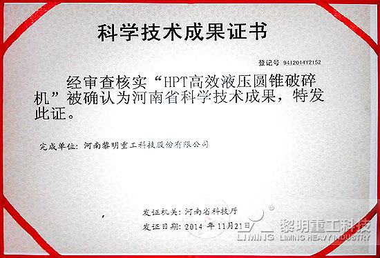 展前捷報(bào):HPT液壓圓錐破、LUM超細(xì)立磨榮獲科學(xué)技術(shù)成果證書(shū)