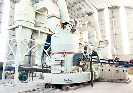 大塊狀 石灰石經(jīng)顎式破碎機(jī)破碎到所需粒度后,由斗式提升機(jī)送至儲(chǔ)料斗,再經(jīng)振動(dòng)給料機(jī)均勻連續(xù)地送入磨粉機(jī)內(nèi)研磨,粉磨后的石灰石粉被風(fēng)吹起,由選粉機(jī)進(jìn)行分級(jí)。符合細(xì)度的石灰石粉隨氣流經(jīng)管道進(jìn)入旋風(fēng)集粉器內(nèi),進(jìn)行分離收集。收集的石灰石粉成品由輸送裝置送入石粉倉,以備脫硫使用。不合格的粒子在被選粉機(jī)分離后被甩向筒壁,沿筒壁落下后重新回到磨粉機(jī)內(nèi)研磨。整個(gè)系統(tǒng)在負(fù)壓狀態(tài)下運(yùn)行,粉塵不外溢從而達(dá)到了清潔的效果。