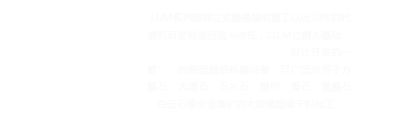 LUM系列超細立式磨主要由電動機、減速機、磨輥裝置、磨盤裝置、加壓裝置、選粉機、機體和油站等組成。它的橫空出世使得一次性完成超細粉的粉磨、分級和輸送作業(yè)的設想現(xiàn)實化,其工藝參數(shù)、機械性能和成品粉品質(zhì)等技術(shù)指標均與臺灣水平相當。
